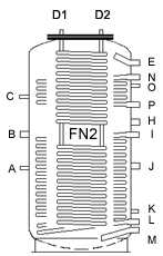 - nerezový výměník spojen s akumulační nádobou pomocí